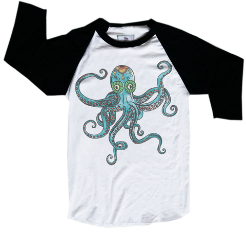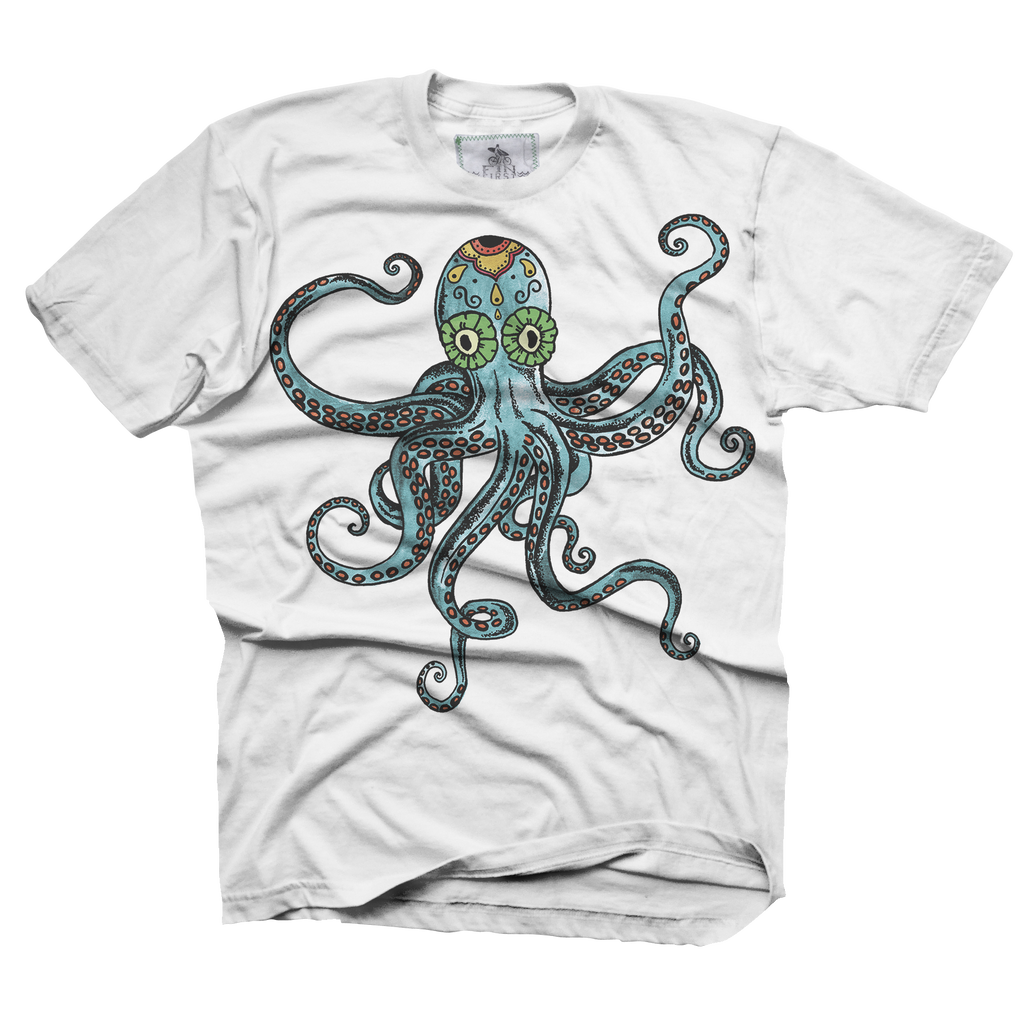 Our hand-drawn Ocho the octopus design is over the top, colorful and has a hint of a Mexican sugar skull.