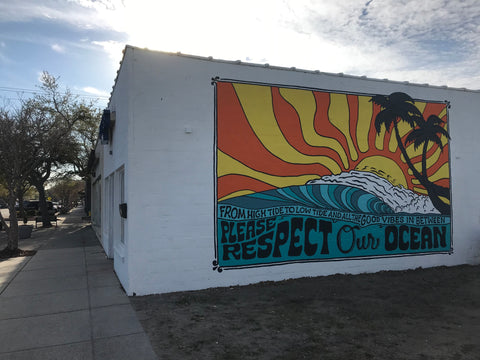 We had the opportunity to design and paint a large, outdoor mural in the Arts and Innovation District of our beach town (Myrtle Beach, SC) and we wanted to share the mural art on our products.