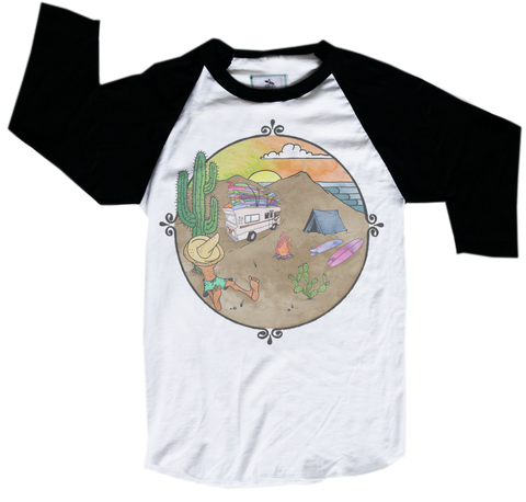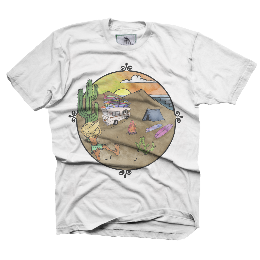 When we started the process of gutting our vintage Winnebago, we noticed she had an insurance sticker on the window from Mexico. We decided to leave it, wondering if she'd ever been across the border in her younger days. We imagine she would've been driven by her carefree owners and their amigos, searching for waves and chasing the endless summer. So cheers to Winnie, her mysterious past and her bright future! Ladies and gentlemen, hope you love our newest design...Viva México!