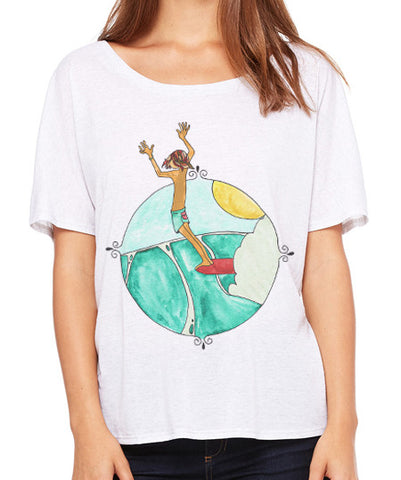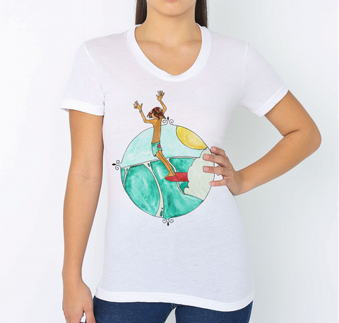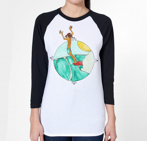 We've been fans of Andy Davis for years and years and this design was inspired by his amazing surf art. The colors in our surfer's hair were pulled from a photograph of the actual shades of red in Fin's hair (all about the details, right?!).